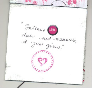 I was sooo lucky to receive a huge box of Yellow Bicycle products from the Love Letters line! This line has EVERYTHING - patterned papers, shaped and flocked papers, mini albums, rubons, epoxy stickers, tons of journaling and date blocks, fabric stickers, borders, transparencies, brads, ribbons, and more. I love this line! Below is my first creation with these new products - a mini book of Mother Theresa quotes.